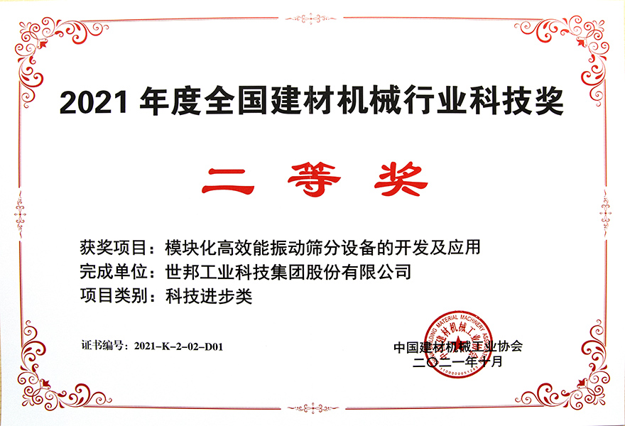 2021年度全國建材機(jī)械行業(yè)科技獎(jiǎng)二等獎(jiǎng)