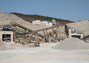 石灰?guī)r原料通過給料機(jī)進(jìn)入HJ98顎破進(jìn)行粗碎,經(jīng)皮帶機(jī)進(jìn)入PFW1214III液壓反擊破進(jìn)行細(xì)碎,經(jīng)振動(dòng)篩篩分10-30mm作為粗骨料,其余為細(xì)骨料,部分細(xì)骨料進(jìn)入VSI9526離心沖擊破做成精品機(jī)制砂。