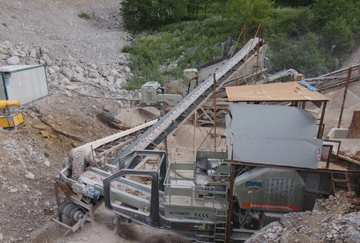 石灰石原料經(jīng)TSW1139棒條給料機均勻給料,蓖條預先篩分除土,石料經(jīng)過PE750×1060顎破破碎之后通過皮帶機先上KF1315-2反擊破移動站的3Y2160振動篩篩分再進入PFW1315Ш三腔反擊破破碎(實現(xiàn)先篩后破,提高生產(chǎn)線效率),反擊破出料皮帶機打到顎破出料的皮帶機上,共用一根上篩皮帶機,再次上振動篩進行篩分,出來0-5-16-31.5mm三種成品料。
