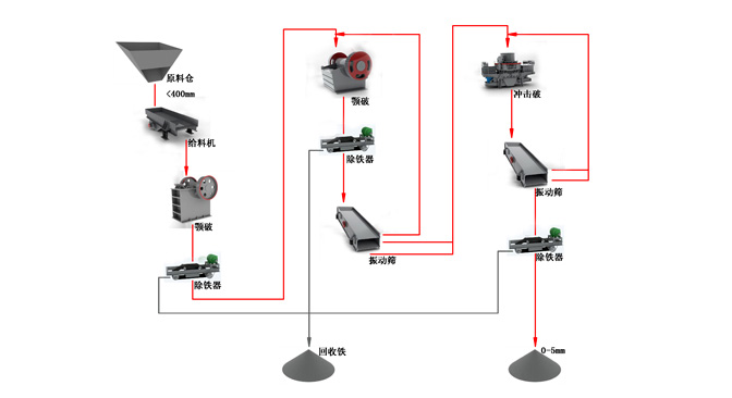 日運(yùn)轉(zhuǎn):12小時(shí) 進(jìn) 料:經(jīng)過(guò)處理后粒徑小于400mm的鋼渣 成 品:0-5mm
