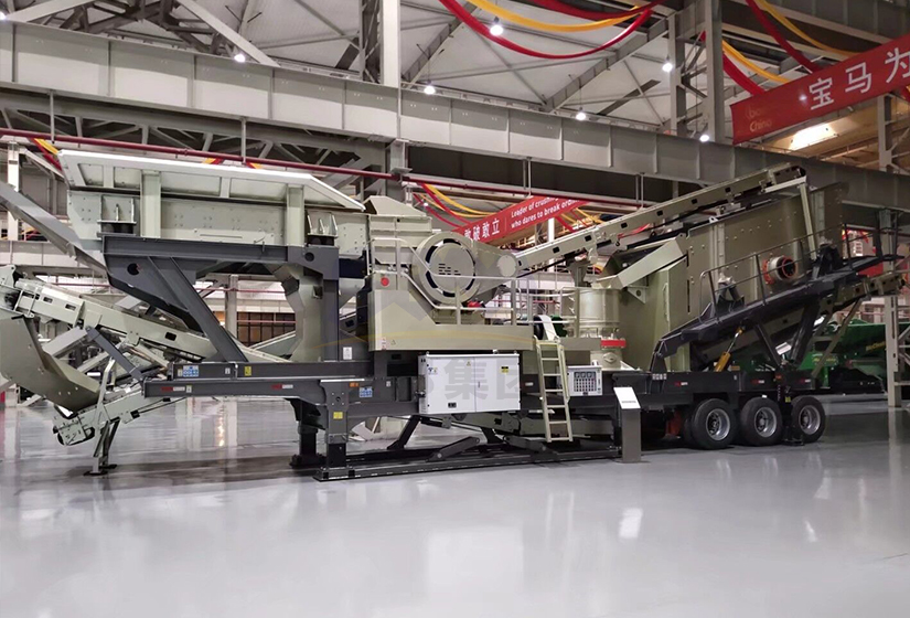 移動生產(chǎn)線通常以外接電力電源為動力來源,原料由振動給料機均勻地送到顎式破碎機或者反擊式破碎機進(jìn)行粗碎作業(yè),粗碎后的物料由皮帶輸送機送入到圓錐式破碎機或者反擊式破碎機進(jìn)行進(jìn)一步破碎,細(xì)碎后的物料被輸送到振動篩進(jìn)行篩分,達(dá)到成品粒度要求的物料被由成品輸送帶輸出即為成品;未達(dá)到成品粒度要求的物料從振動篩返回沖擊式破碎機或者圓錐式破碎機重新加工,形成閉路多次循環(huán)。成品粒度可按用戶的需求進(jìn)行組合和分級。