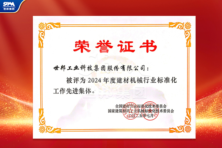 近日,經(jīng)全國建材裝備標準化技術(shù)委員會及國家建筑材料工業(yè)機械標準化技術(shù)委員會嚴格評審,世邦集團憑借在行業(yè)標準體系建設(shè)中的突出貢獻,被授予“2024年度建材機械行業(yè)標準