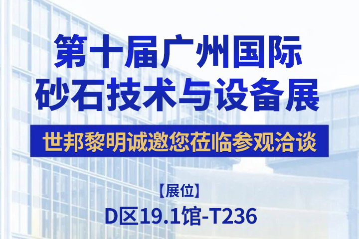 世邦黎明誠邀您蒞臨第十屆廣州國際砂石技術(shù)與設(shè)備展,展位:D區(qū)19.1館-T236,時(shí)間2024.9.23-25,地址:廣州·中國進(jìn)出口商品交易會(huì)展館