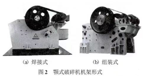 顎式破碎機(jī)機(jī)架形式如圖2所示,目前機(jī)架形式分為焊接式和組裝式兩種結(jié)構(gòu)。
