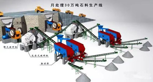 在兩段破碎工藝?yán)?,前一段為開(kāi)路生產(chǎn),后一段為閉路生產(chǎn),閉路生產(chǎn)可以平均調(diào)配級(jí)別的石頭。