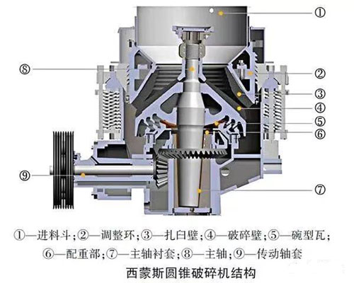 該機的缺點是能耗較高,機器笨重,產(chǎn)量也偏低。隨著圓錐破碎機日益高能化的發(fā)展方向,該機也將逐漸被液壓圓錐破碎機取代。