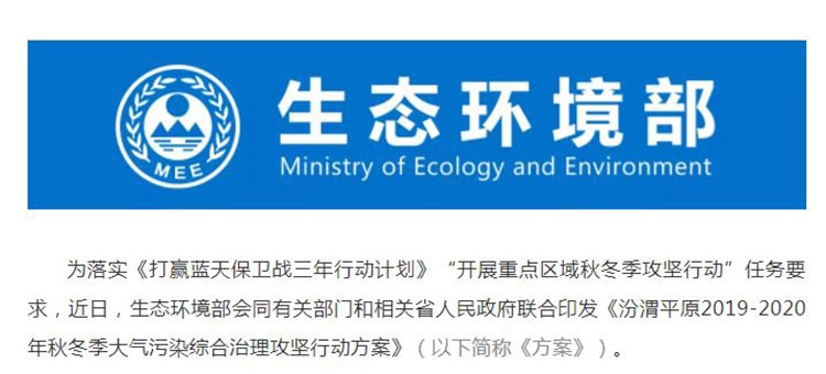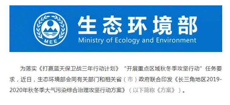 近日,生態(tài)環(huán)境部會(huì)同有關(guān)部門和相關(guān)?。ㄊ校┱?lián)合印發(fā)《長(zhǎng)三角地區(qū)2019-2020年秋冬季大氣污染綜合治理攻堅(jiān)行動(dòng)方案》和《汾渭平原2019-2020年秋冬季大氣污染綜合治理攻堅(jiān)行動(dòng)方案》(以下簡(jiǎn)稱《方案》)。