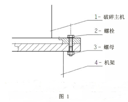 如圖1所示,破碎主機(jī)與機(jī)架通過螺栓和螺母連接,破碎主機(jī)與機(jī)架之間沒有緩沖和減振裝置。由于螺栓彈性模量較大、變形量較小,因此本方案視為剛性連接。