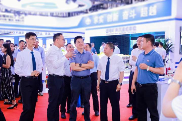 (馮總向參會(huì)領(lǐng)導(dǎo)介紹世邦展位)
