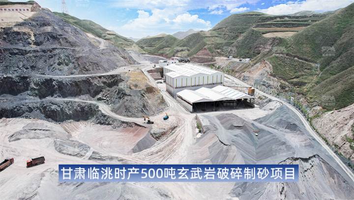 甘肅臨洮,礦區(qū)巖石以玄武巖為主,經(jīng)檢測,石料壓碎值達到13%,單軸抗壓強度為95MPa,適用于高強、高性能混凝土和道路、隧道、橋梁等建筑工程用材。基于原礦石特性和成品高品質(zhì)骨料需求,項目對破碎工藝方案和破碎設(shè)備提出了嚴格要求。