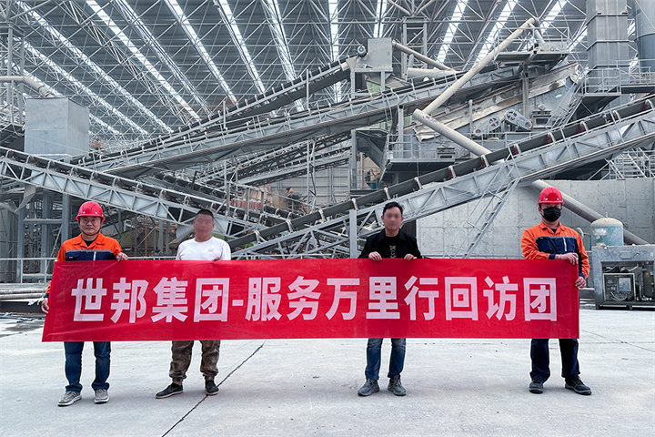 該項目采用世邦F5X給料機、C6X顎式破碎機、HPT多缸液壓圓錐破、VSI6X制砂機、S5X振動篩等系列破碎制砂篩分裝備,回訪中售后人員與客戶詳細溝通了生產(chǎn)線設(shè)備使用情況,對主機性能、易損件使用情況等進行了詳細的檢測。