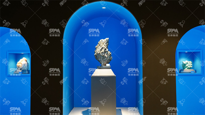 礦博館是世邦集團自主策劃、自主設(shè)計、自主搜集展標、自主施工的項目,共分為三個大廳:礦石起源廳、巖石礦物廳、礦石加工應(yīng)用廳,陳列了近4000件來自世界各地的礦石及諸多客戶現(xiàn)場帶回的成品砂石骨料等。