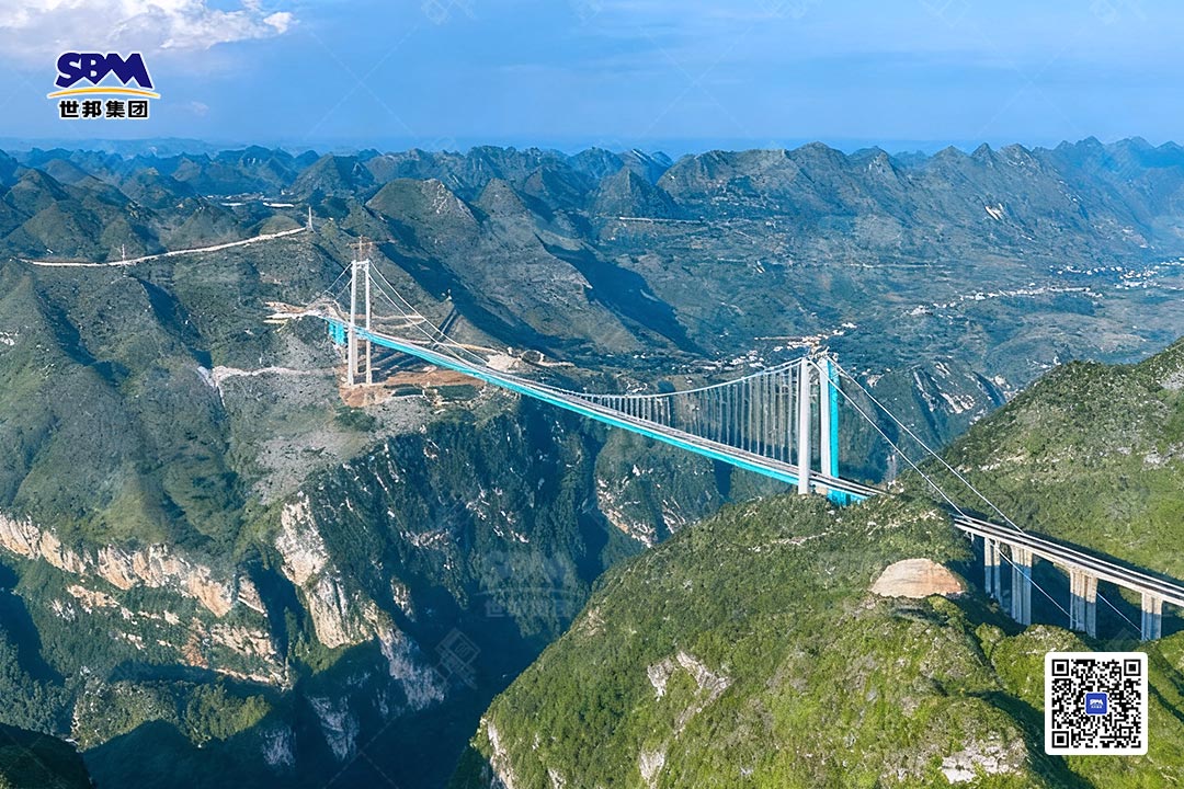 在這項令人矚目的工程背后,凝聚著無數(shù)建設者與專業(yè)裝備的協(xié)同努力。作為承建方,貴州橋梁建設集團(隸屬貴州交建集團)以其雄厚的技術實力和豐富的橋梁建設經(jīng)驗,承擔了這一超級工程的建設重任;而世邦集團作為破碎制砂裝備領域的深耕者,有幸為這條“云端天路”的基礎建設——六安高速公路,提供了可靠的砂石骨料生產(chǎn)設備與技術保障。