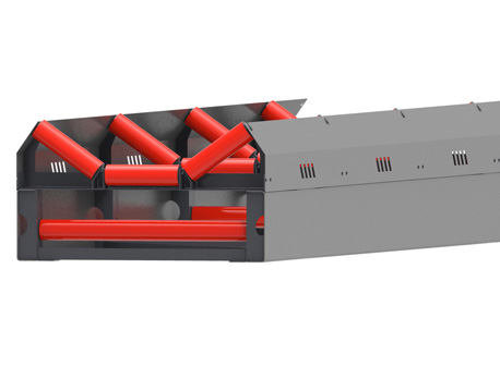 傳統(tǒng)皮帶機一般使用槽鋼和托輥架搭配使用,機架相對單薄。而B6X皮帶機在這一點上做了變革——使用C型鋼代替了槽鋼并配備側(cè)護(hù)板,基于這個改進(jìn),B6X系列皮帶機機架總體鋼性得以大大提升。