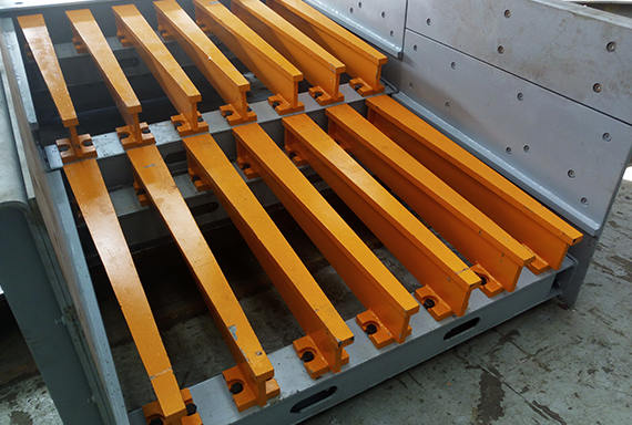 采用NM耐磨鋼組焊而成的棒條結(jié)構(gòu),不僅壽命長,篩分效率高,安裝調(diào)整也非常便捷;棒條開口設(shè)定可在80-200mm范圍內(nèi)調(diào)節(jié);兩段棒條組階梯高落差結(jié)構(gòu),使得物料二次分散,能有效剔除小于破碎機緊邊排礦口的細料免于重復(fù)破碎,剔除效率90%以上,大大降低初段破碎機負荷。