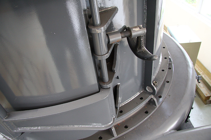 傳統(tǒng)磨機的進風(fēng)蝸殼觀察門內(nèi)部門板內(nèi)面向外凸出,與進風(fēng)蝸殼內(nèi)面不在一個平面上,這樣就易產(chǎn)生渦流效應(yīng),增加系統(tǒng)能耗。MTW歐版梯形磨粉機采用內(nèi)部門板內(nèi)面與進風(fēng)蝸殼內(nèi)面在同一曲面上,這樣就能有效的避免渦流效應(yīng),風(fēng)量損失小,物料流動性更好。