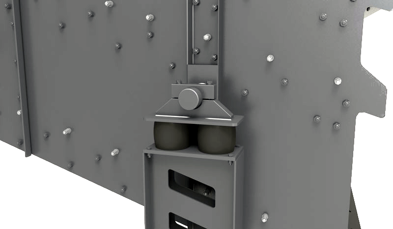 S5X振動(dòng)篩篩機(jī)支撐采用成本更高的橡膠彈簧,與金屬?gòu)椈上啾?,具有使用壽命長(zhǎng)、耐腐蝕,運(yùn)行平穩(wěn)、噪音低、對(duì)地基沖擊小等優(yōu)點(diǎn)