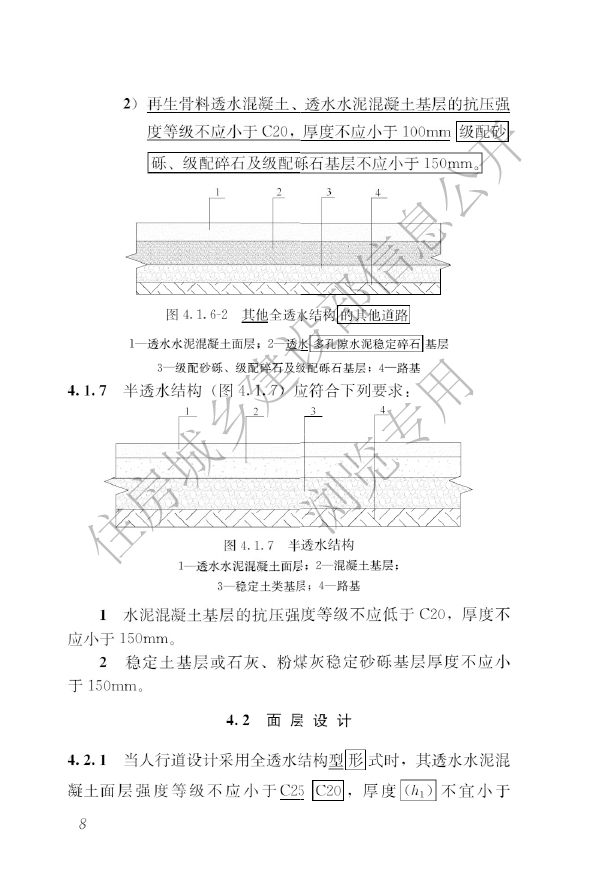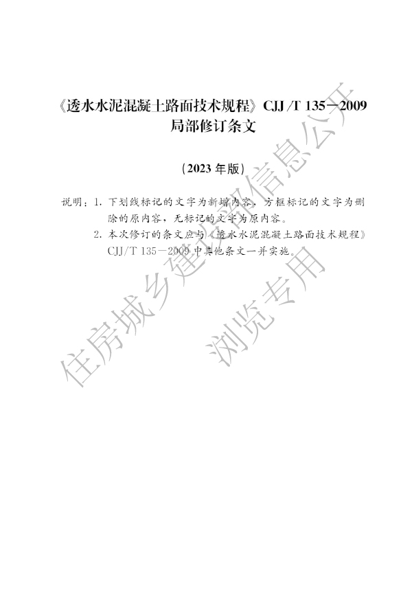 本規(guī)程適用于新建的城鎮(zhèn)輕荷載道路、園林中的輕型荷載道路、居住區(qū)內(nèi)道路、廣場(chǎng)和停車場(chǎng)等透水水泥混凝土路面的設(shè)計(jì)、施工、驗(yàn)收和維護(hù)。本規(guī)程不適用于嚴(yán)寒地區(qū)、濕陷性黃土地區(qū)、鹽漬土地區(qū)、膨脹土地區(qū)的路面。