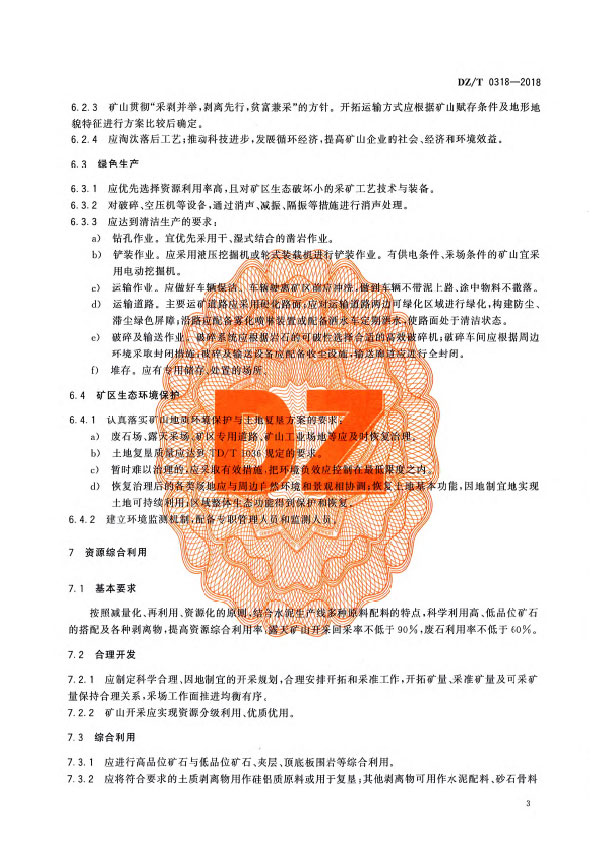 本標(biāo)準(zhǔn)規(guī)定了水泥用灰?guī)r綠色礦山礦區(qū)環(huán)境,資源開發(fā)方式、資源綜合利用、節(jié)能誠排、科技創(chuàng)新與數(shù)字化礦山、企業(yè)管理與企業(yè)形象方面的基本要求。本標(biāo)準(zhǔn)適用于水泥用灰?guī)r新建、改擴(kuò)建和生產(chǎn)礦山的綠色礦山建設(shè)。