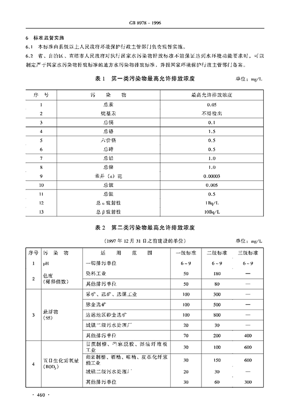 本標準按照污水排放去向,分年限規(guī)定了69種水污染物理想允許排放濃度及部分行業(yè)理想允許排水量。本標準適用于現有單位水污染物的排放管理,以及建設項目的環(huán)境影響評價、建設項目環(huán)境保護設施設計、竣工驗收及其投產后的排放管理。