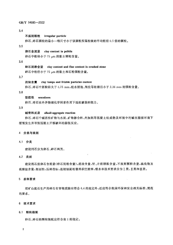 建筑用石料的生產(chǎn)不僅會影響自然環(huán)境,還影響工程建設(shè)質(zhì)量。隨著工程建筑對石料的消耗不斷增加,石料的來源趨于復(fù)雜,同時隨著工程技術(shù)的進(jìn)步,對混凝土質(zhì)量要求提高,對石料的質(zhì)量要求也不斷提高。本標(biāo)準(zhǔn)適用于建設(shè)工程中水泥混凝土及其制品用卵石、碎石。